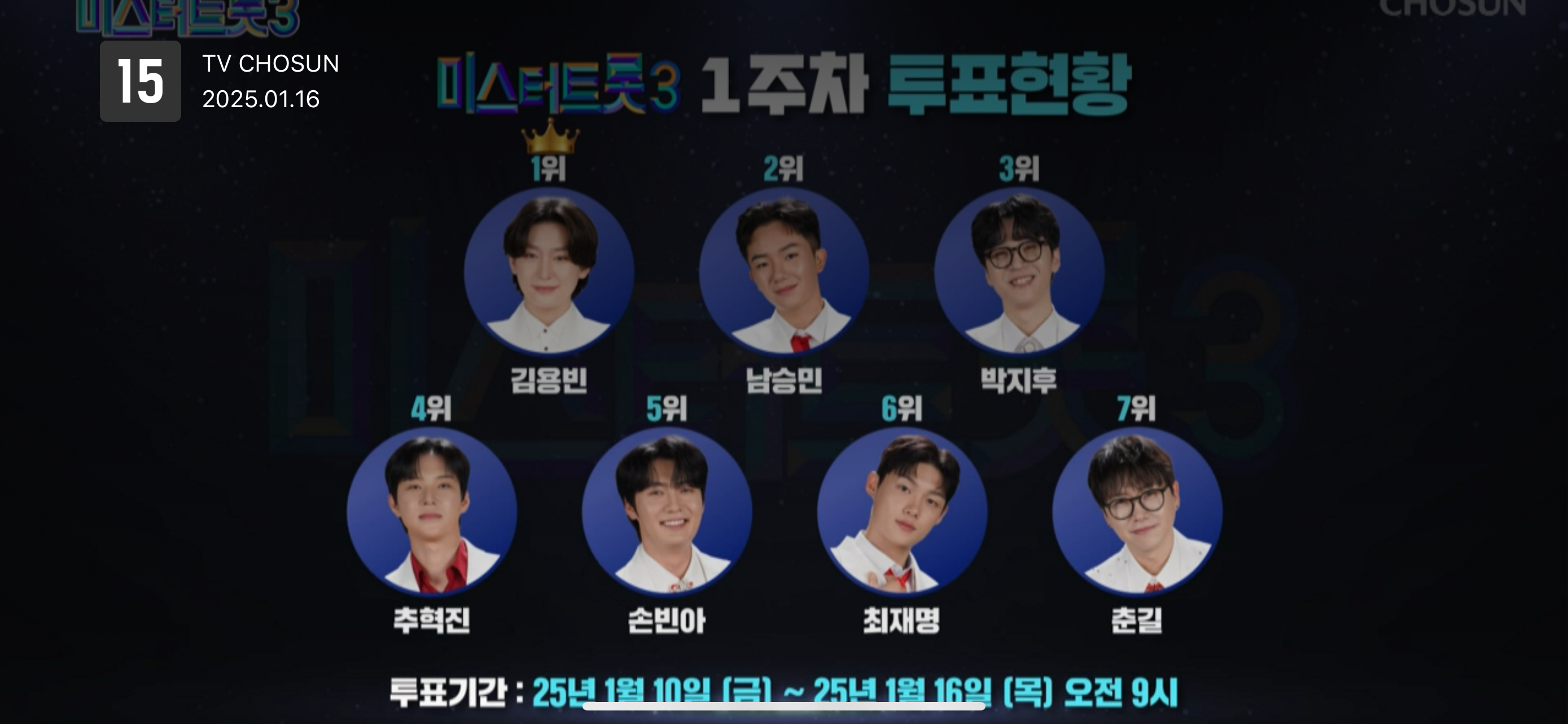 16일 방송된 TV CHOSUN의 '미스터트롯 3'에서는 1주차 투표 결과가 공개되었습니다. 장르별 팀 배틀 대진은 다음을 확인하세요.