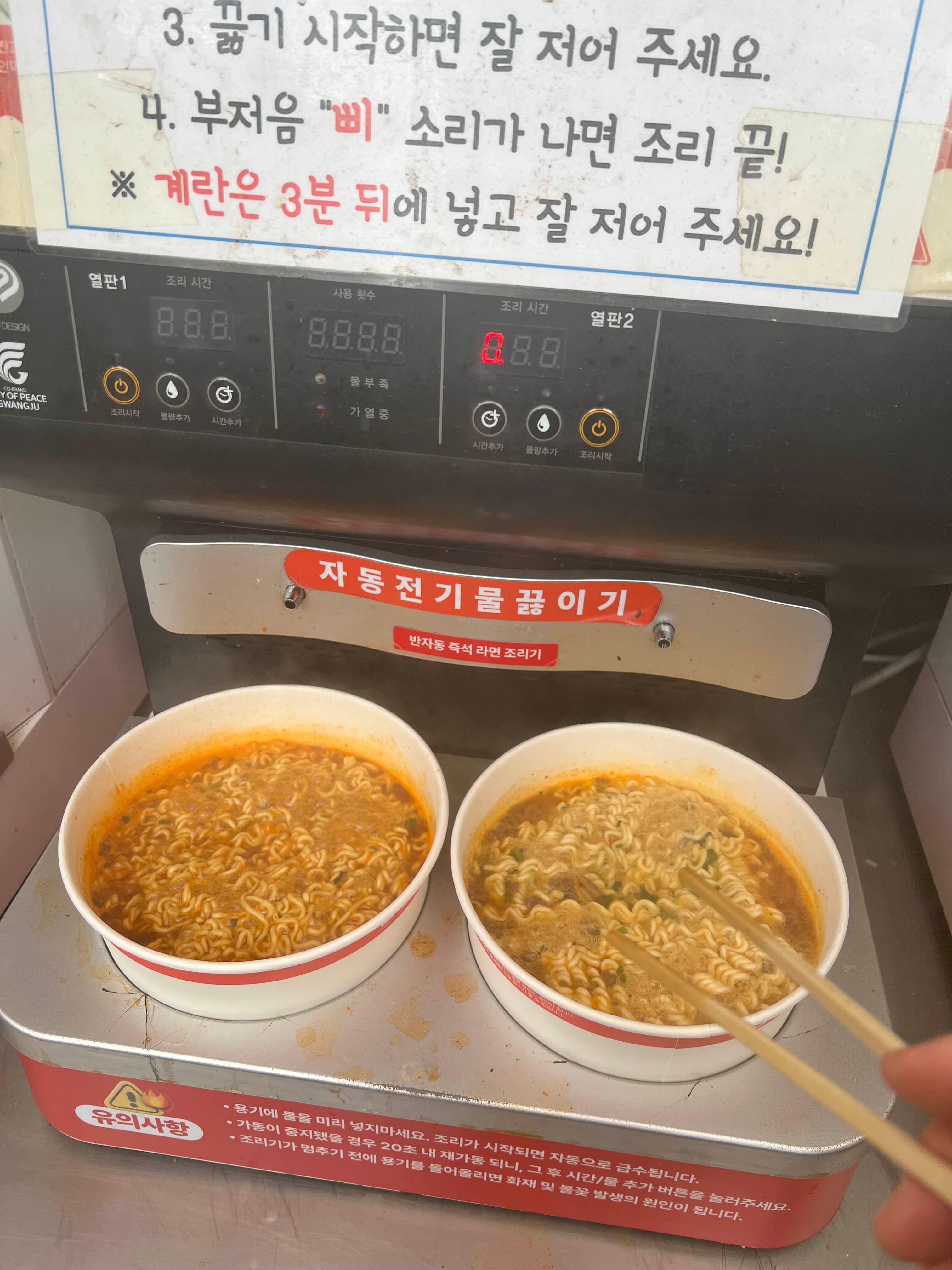 - CU와 GS25 편의점에 설치된 기계로 컵라면을 끓여 먹을 수 있고,