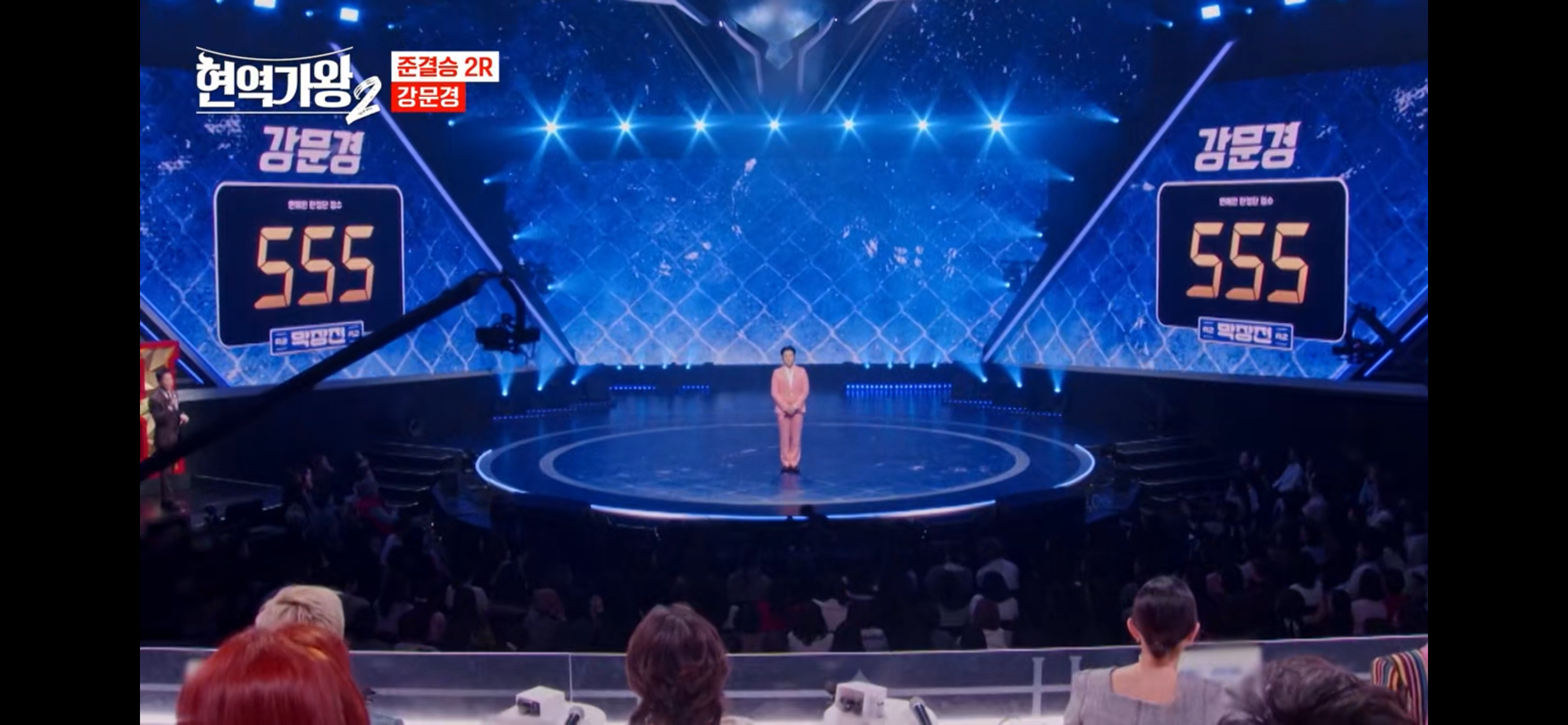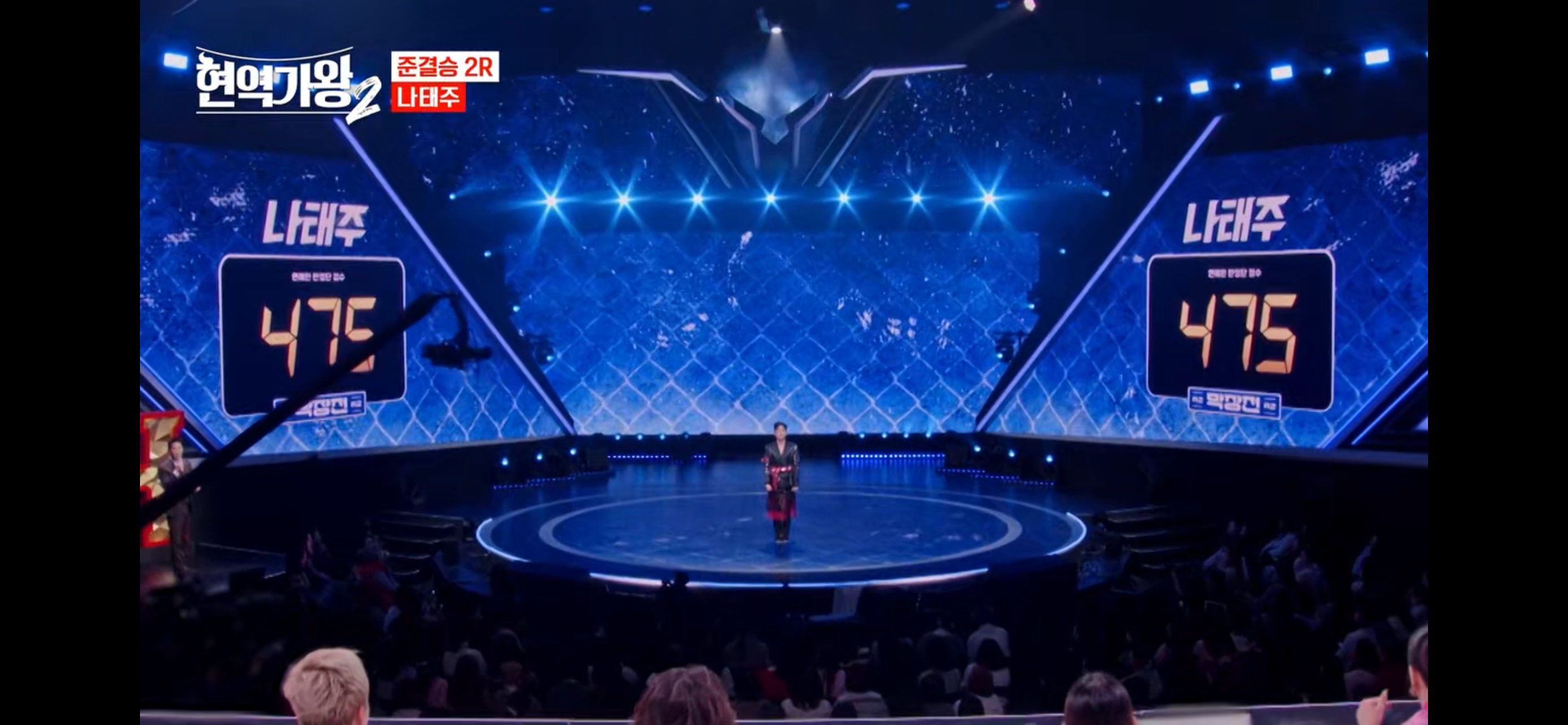이날 방송에서는 결승에 진출하기 전 마지막 대결인 준결승 2라운드 '막장전'은 현역 선수 14명의 필살기가 펼쳐졌습니다. 지난주 400점을 획득한 '1대1 장르 대결' 1라운드에 이어 '막장전' 2라운드는 1라운드보다 2배 이상 높은 만점 860점을 기록하며 더욱 긴장감 넘치는 승부를 예고했습니다. '막장전' 2라운드에서는 연예인 판정단 605점, 국민 판정단 255점이 주어지며 국민 응원 투표 점수를 합산하여 순위를 가립니다.